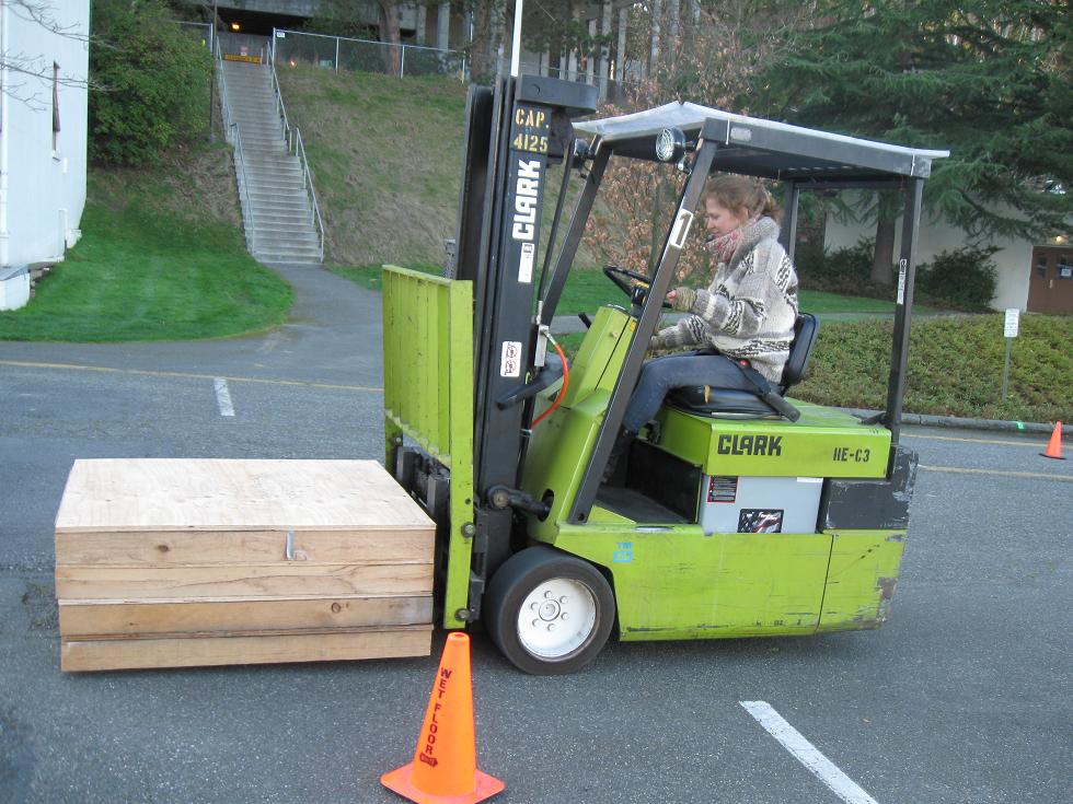 We extracted and shipped 40 tons of low background lead bricks from the basement of the UW Atmospheric Sciences building, which will eventually be used at shielding in the Majorana experiment in South Dakota. I was able to get my forklift license in order to do some of the heavy lifting! It was great to see all those pallets that I helped make several years ago finally get put to use. | |